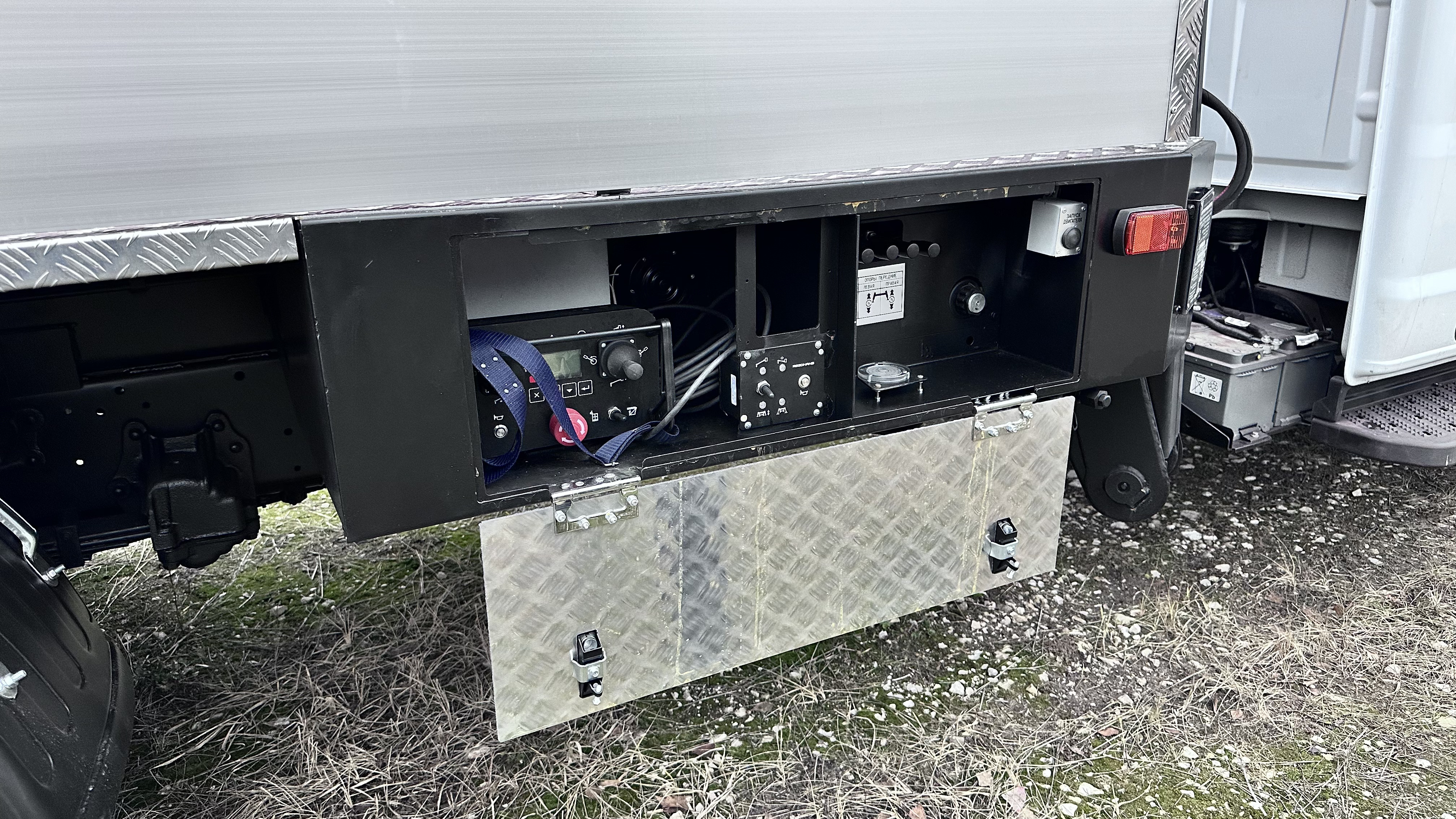 Наличие изолированной люльки позволяет выполнять обслуживание электрических установок напряжением до 1000 В без его отключения. Подъемник снабжен двумя пультами управления навесным оборудованием: нижним – выносным и верхним – в люльке.